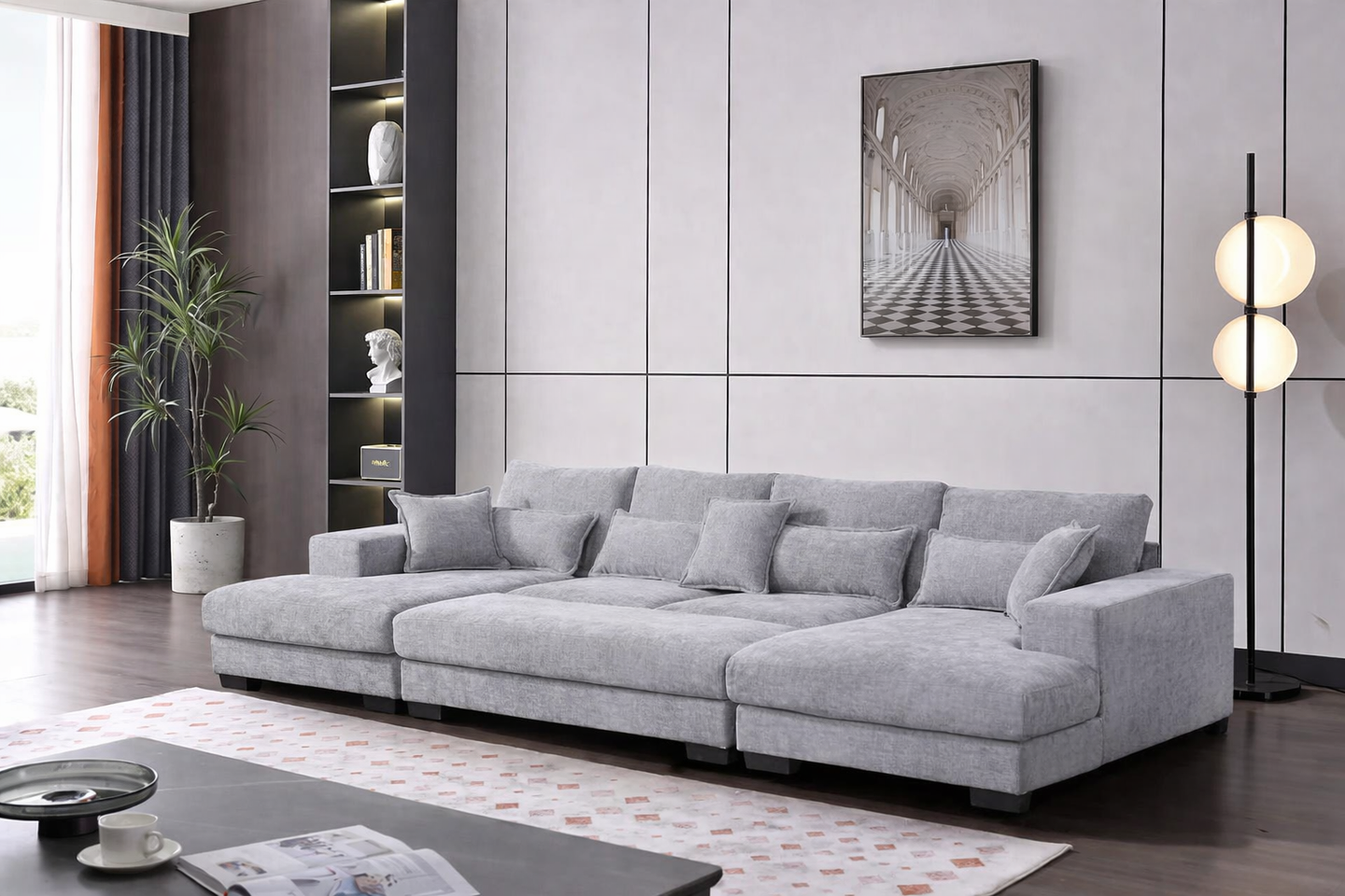 The Dreamline Deep-Sitting Lounge Set offers superior comfort with a contemporary design, perfect for relaxed living and everyday use. Featuring a versatile ottoman and plush scatter cushions, its generous proportions and soft fabric upholstery create a cosy seating experience for family gatherings or quiet evenings. Supported by a sturdy frame with quality cushioning, this lounge delivers lasting comfort while complementing a wide range of interior styles. Available in Light Grey and Dark Grey, it’s a stylish and practical addition to any living space.